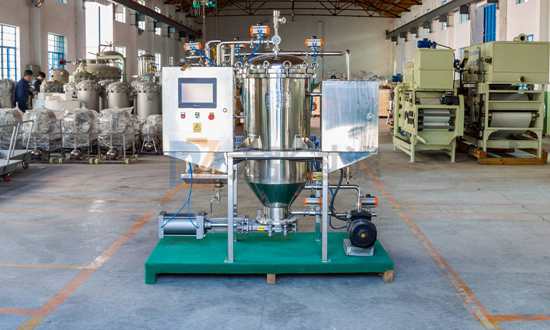 燭式過濾器是一個全密閉的過濾系統,主要部件有物料罐、儲氣罐、過濾泵、燭式過濾器、管道、閥門、PLC電器控制等組成。它的過濾過程是完全密閉的,無泄漏,沒有任何的環境污染。可以實現一次性全過程自動化過濾,濾餅洗滌、風干,同時采用氣體反吹排渣等工藝。整套過程速度快,無污染,可獲得max工作效率。